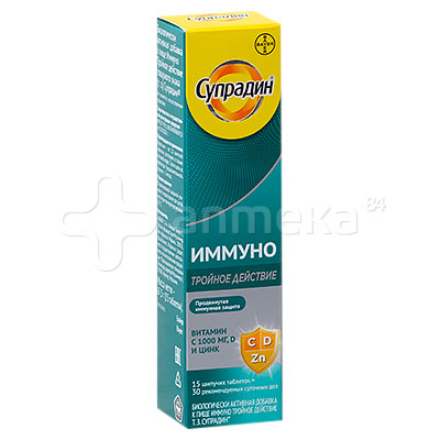 Супрадин иммуно 1000мг. №15 шипучие таблетки. Bayer, Франция.