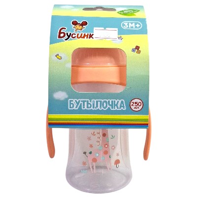 Бутылочка широкогорлая с ручками 250мл БУСИНКА . Таиланд .
