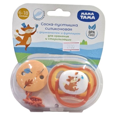Соска-пустышка МАМА ТАМА симметричная силиконовая 6-18 мес., с держателем, цвет: оранжев, арт МТ/108