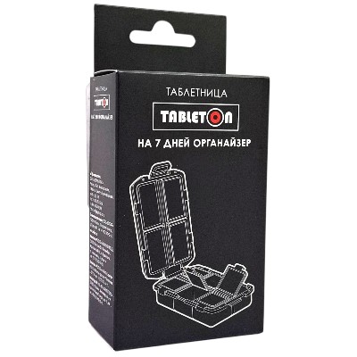 Таблетница на 7дней Таблетон Органайзер черный .Россия .