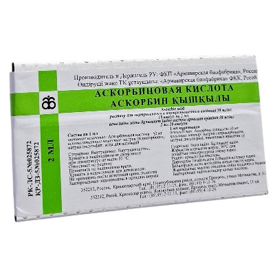 Аскорбиновая кислота 50мг/мл 2мл №10 р-р для в/в . Армавир Биофабрика . Россия