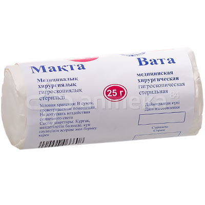 Вата 25 гр. стерильная бумажн упаковка, Baxtteks-Farm, Узбекистан.