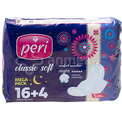 Гигиенические прокладки Classic Soft Night 20шт. (хлопок) ночные PERI Узбекистан.