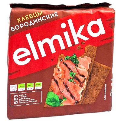 Хлебцы хрустящие ржаные бородинские Elmika . Россия.