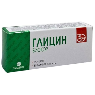 Глицин Биокор с витам В1и В6 №60 таблетки .